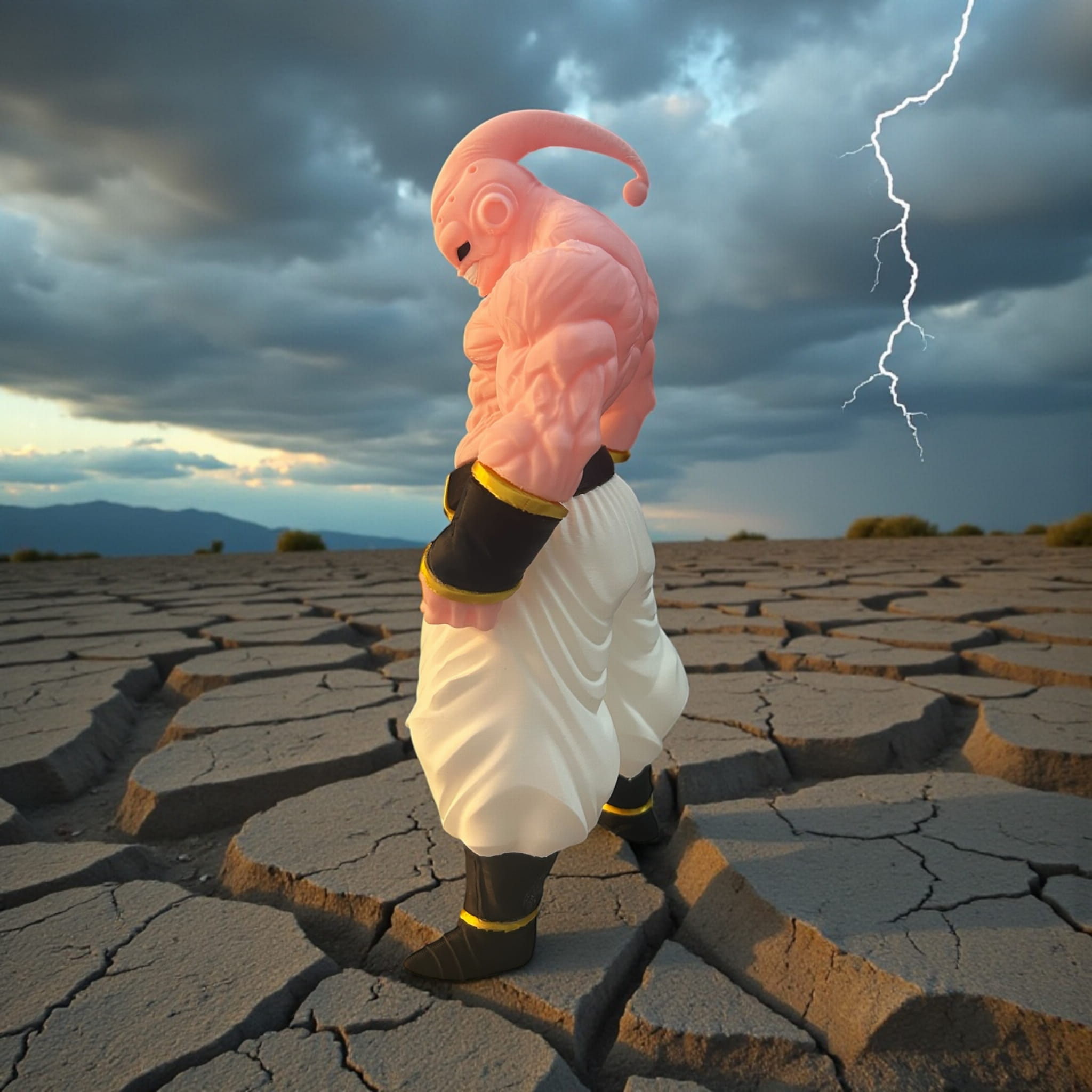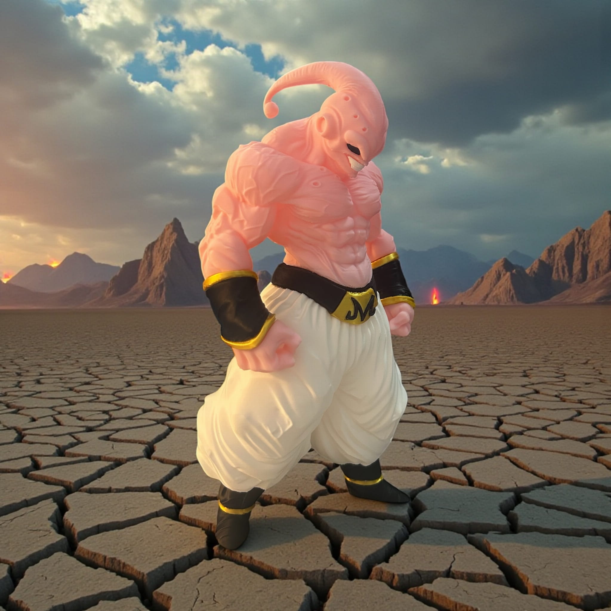 Figurka inspirowana Dragon Ball przedstawiająca potężnego Majin Buu w bojowej pozie. Dynamiczna sylwetka, wysoka szczegółowość i efektowny wygląd dla fanów anime.