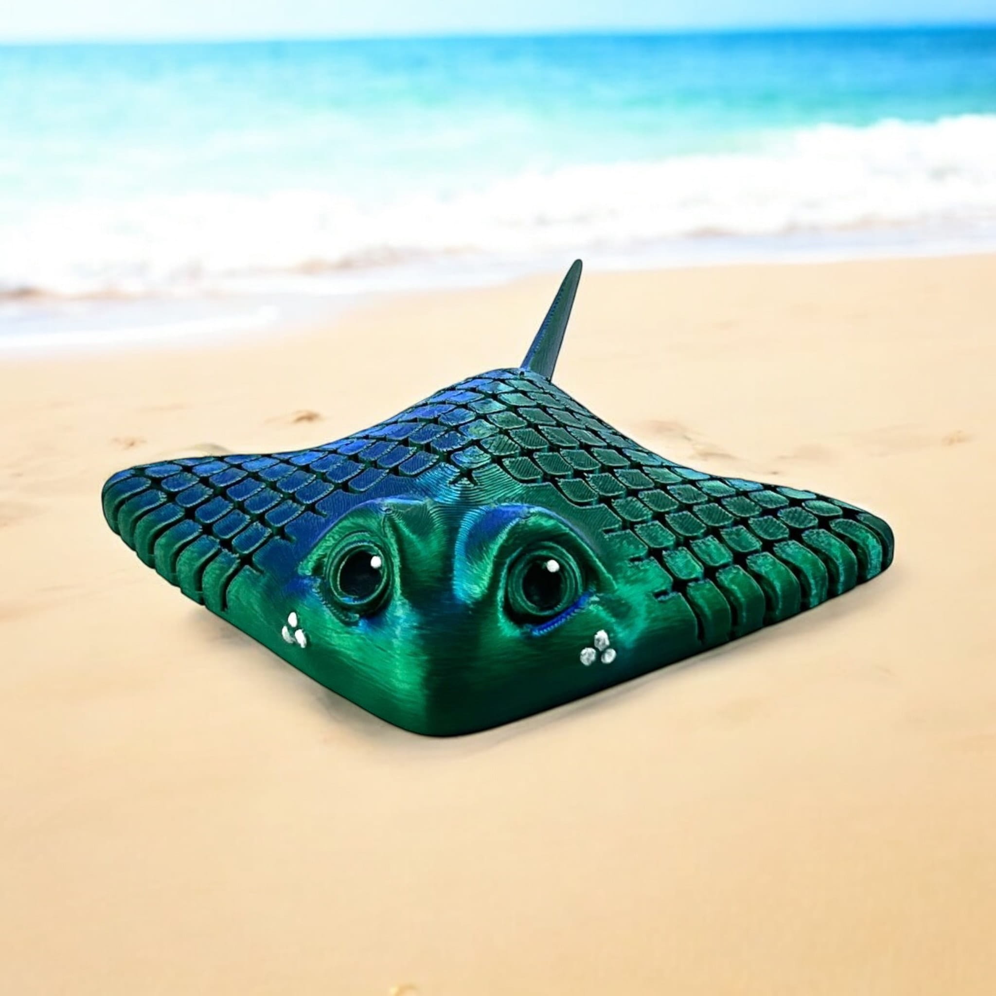 Ruchoma figurka Manta Ray - Zielono / Niebieska