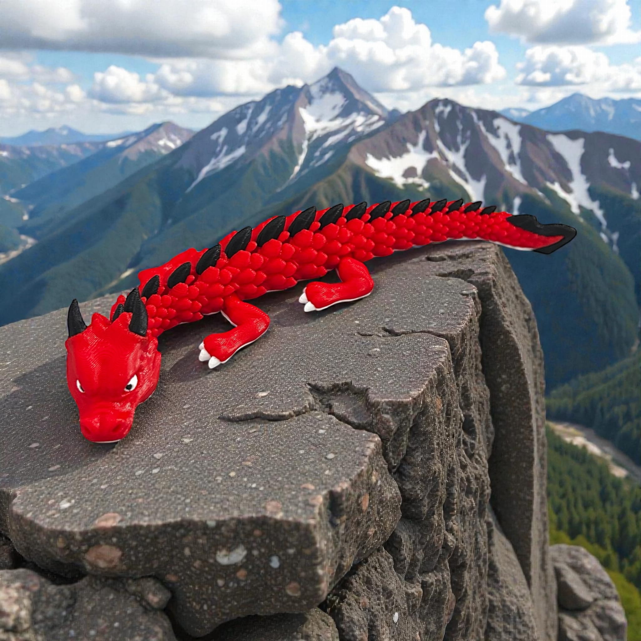Figurka smoka wykonana w technologii druku 3D. Dynamiczna forma, wyraziste detale i intensywne kolory sprawiają, że idealnie nadaje się jako ozdoba lub prezent